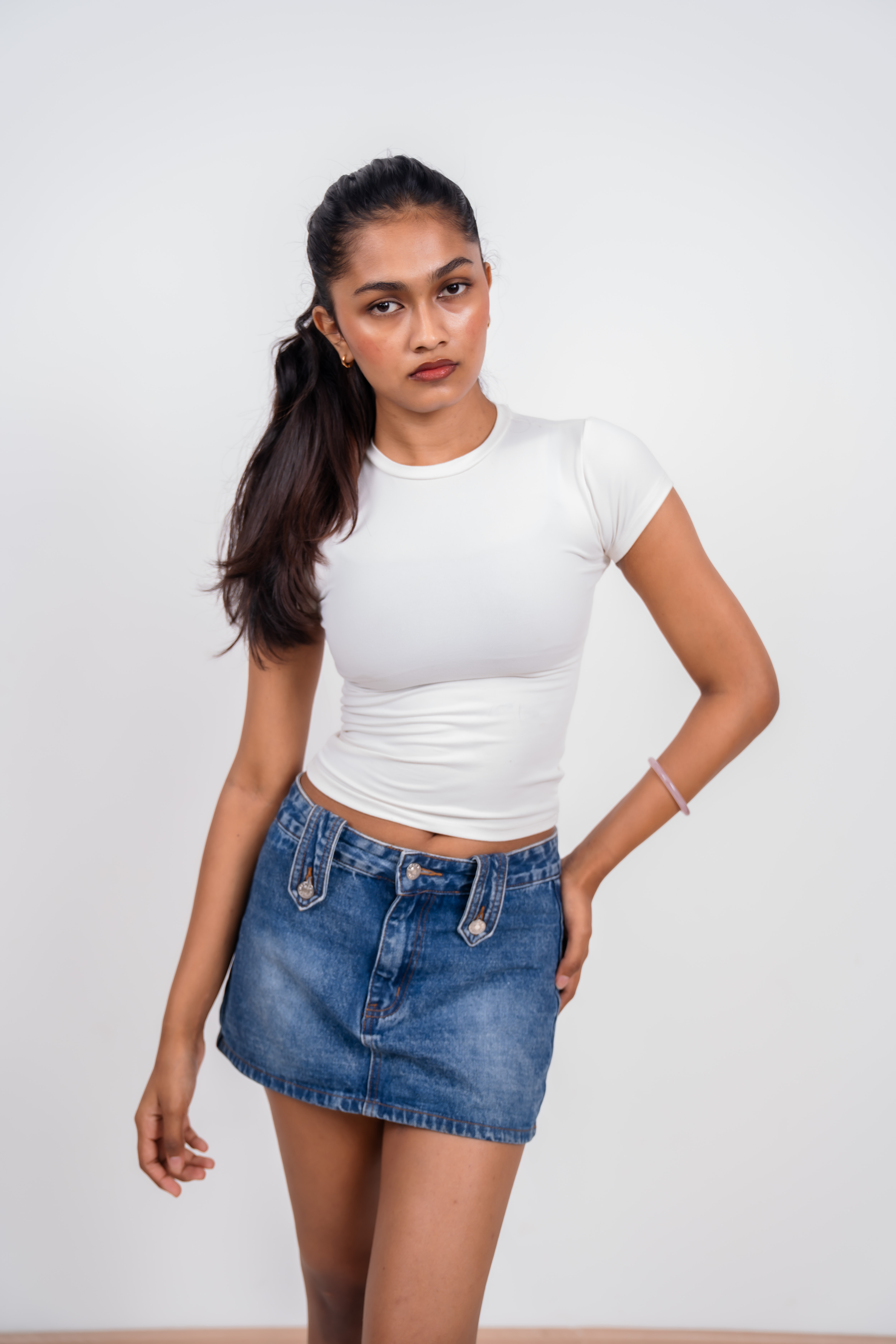 Sanjana embodies timeless beauty with a naturally graceful charm that never goes unnoticed. Her refined features and expressive gaze give her a distinct presence that suits both traditional and modern shoots.